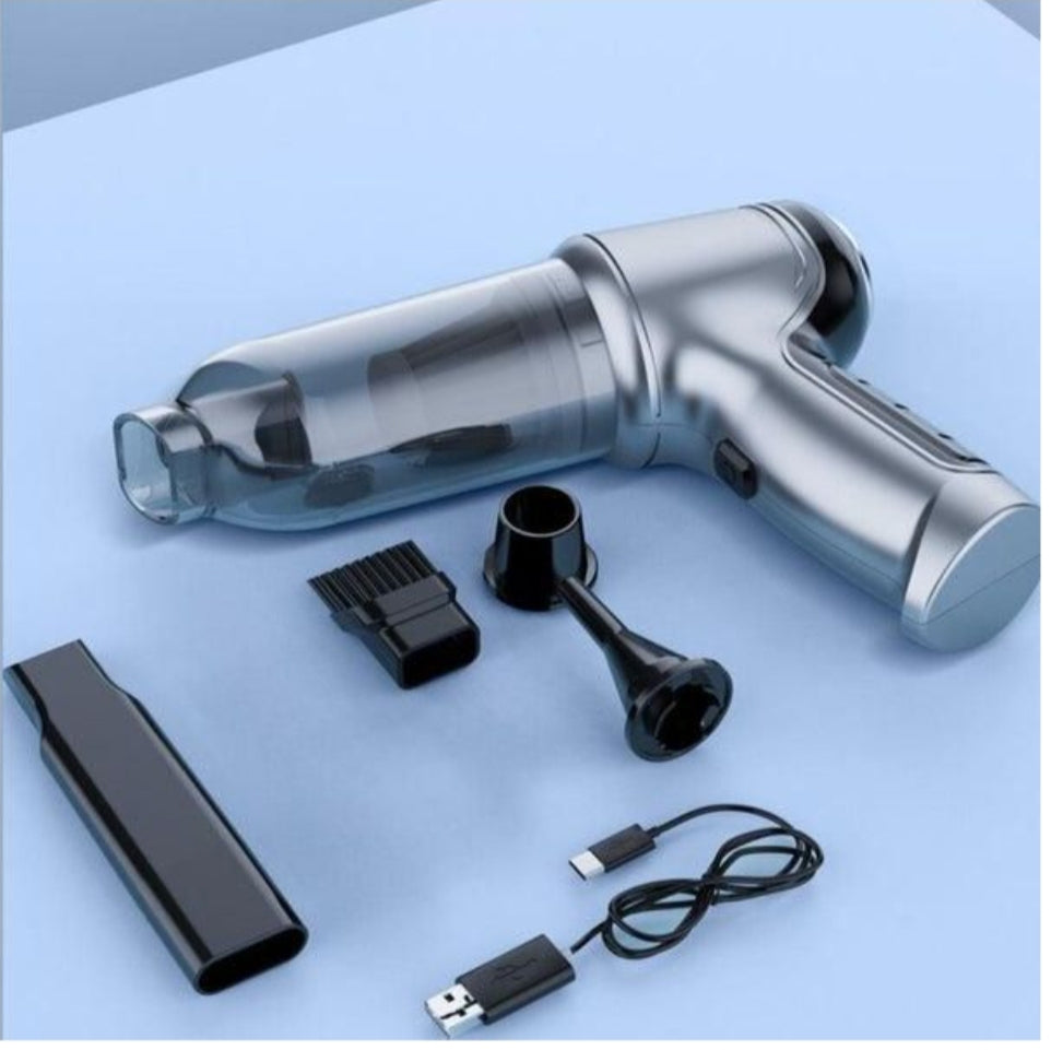 Llevá la limpieza en tu mochila o guantera. Esta aspiradora 3 en 1 combina succión eficaz con función de inflado para resolver rápidamente polvo, migas y pelusas en auto, escritorio o casa. Batería recargable y diseño compacto para usarla donde quieras.